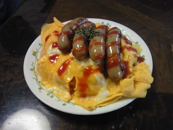 そしてたまたま賞味期限ギリギリだったのでウインナーを炒め無駄に豪快に盛り付け。